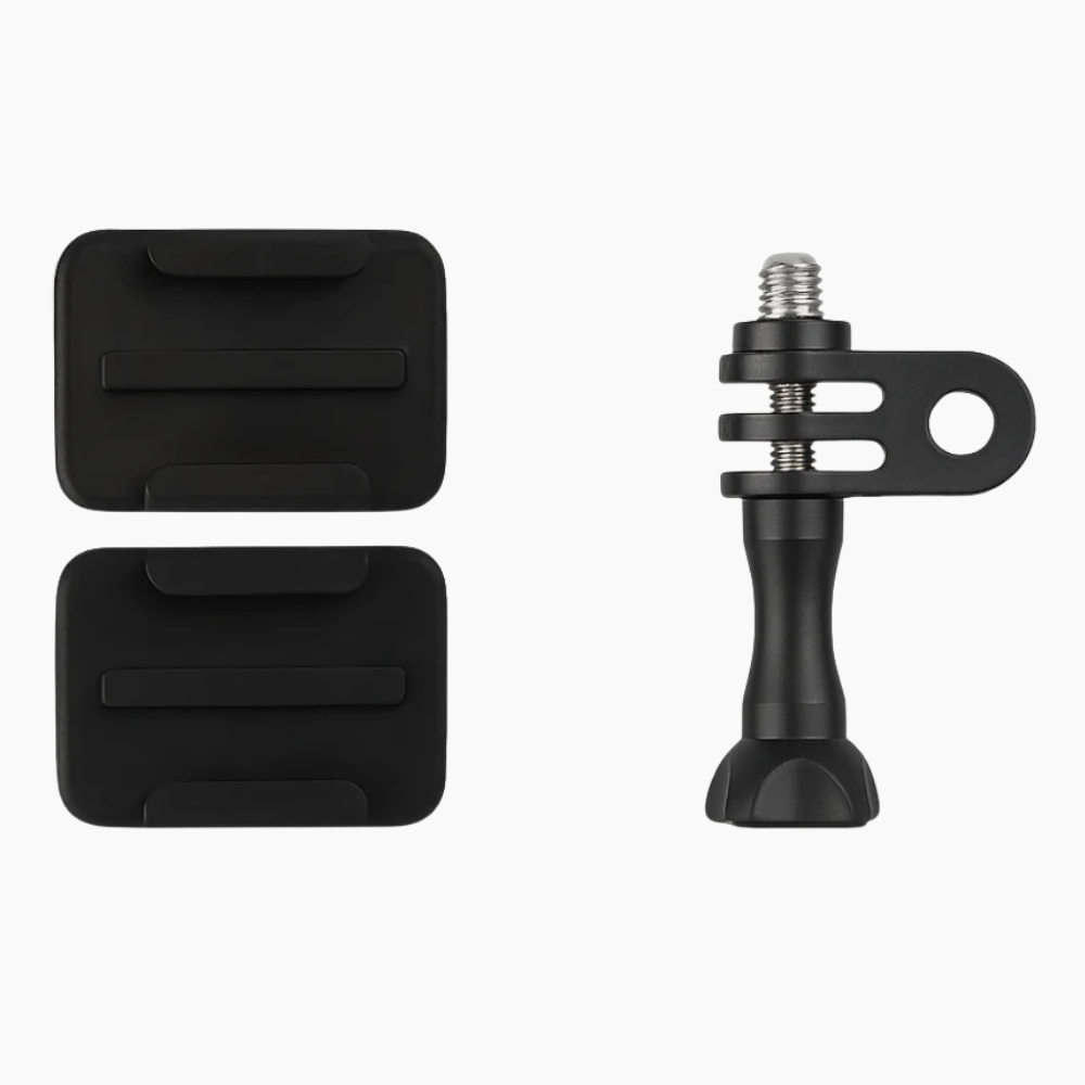 A universal adhesive clip mount, stick it to helmets, boards, dashboards—anything—and slide the camera in for a stable, reliable hold.